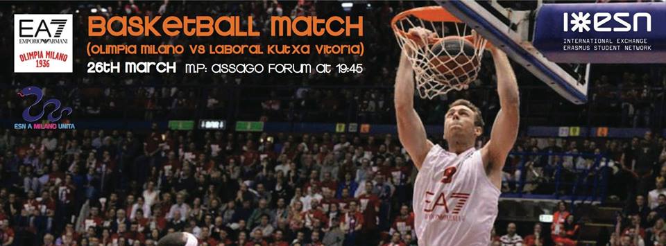 Milan is not only football, Inter-Milan and AC Milan, but also the city of the best italian basketball team, the glorious Olimpia Milano. The ESN a MILANO UNITA staff is proud to invite you to see the Euroleague match EA7 Milano vs Laboral Kutxa Vitoria!